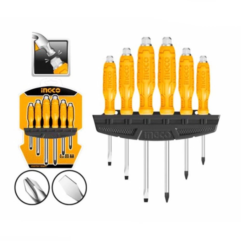 TÁTO SADA SKRUTKOVAČOV SO STOJANOM 6 KUSOV INGCO je vyrobená z vysokokvalitných materiálov a je praktická a ľahko použiteľná. Súčasťou sady je stojan, v ktorom môžu byť skrutkovače uložené a usporiadané. Rukoväte majú špeciálny protišmykový a ergonomický povrch a sú vybavené otvorom na zavesenie.