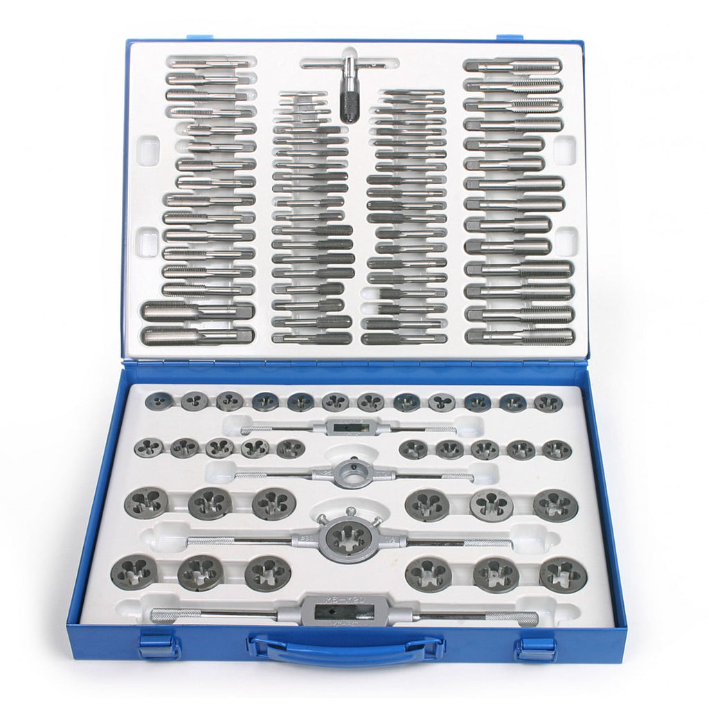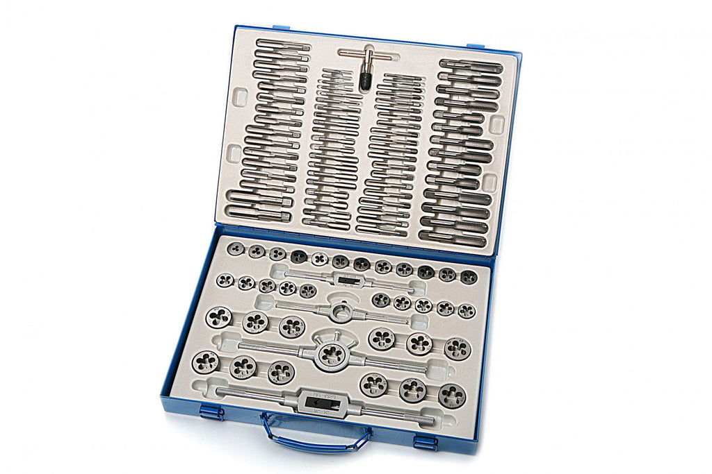 - Obsahuje 110 kusov závitníkov a závitových očiek s jemným a normálnym stúpaním