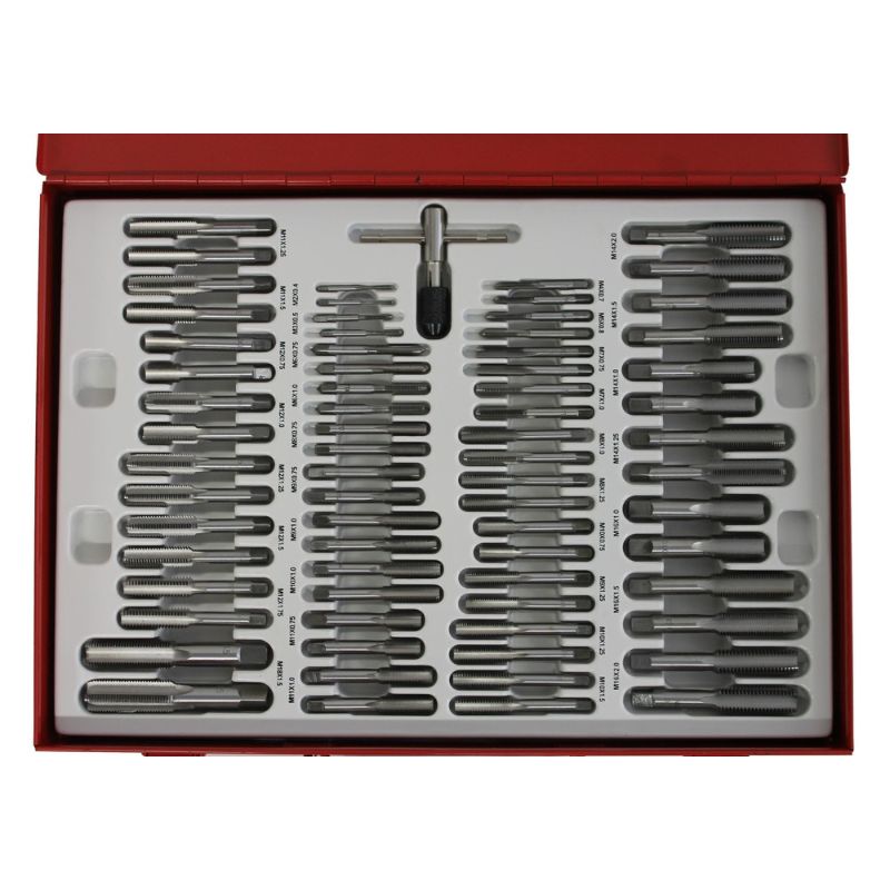 - Závitníky: M2x0.4mm , M3x0.5mm , M4x0.7mm, M5x0.8mm , M6x0.75mm , M6x1.0mm , M7x0.75mm , M7x1.0mm , M8x0.75mm , M8x1.0mm , M8x1.25mm , M9x0.75mm , M9x1.0mm , M9x1.25mm , M10x0.75mm , M10x1.0mm , M10x1.25mm , M10x1.50mm , M29x0.75mm , M29x1.0mm , M29x1.25mm , M29x1.5mm , M12x0.75mm , M12x1.0mm , M12x1.25mm , M12x1.5mm , M12x1.75mm , M14x1.0mm , M14x1.25mm , M14x1.5mm , M14x2.0mm , M16x1.0mm , M16x1.5mm , M16x2.0mm , M18x1.5mm, 3 držiaky závitníkov