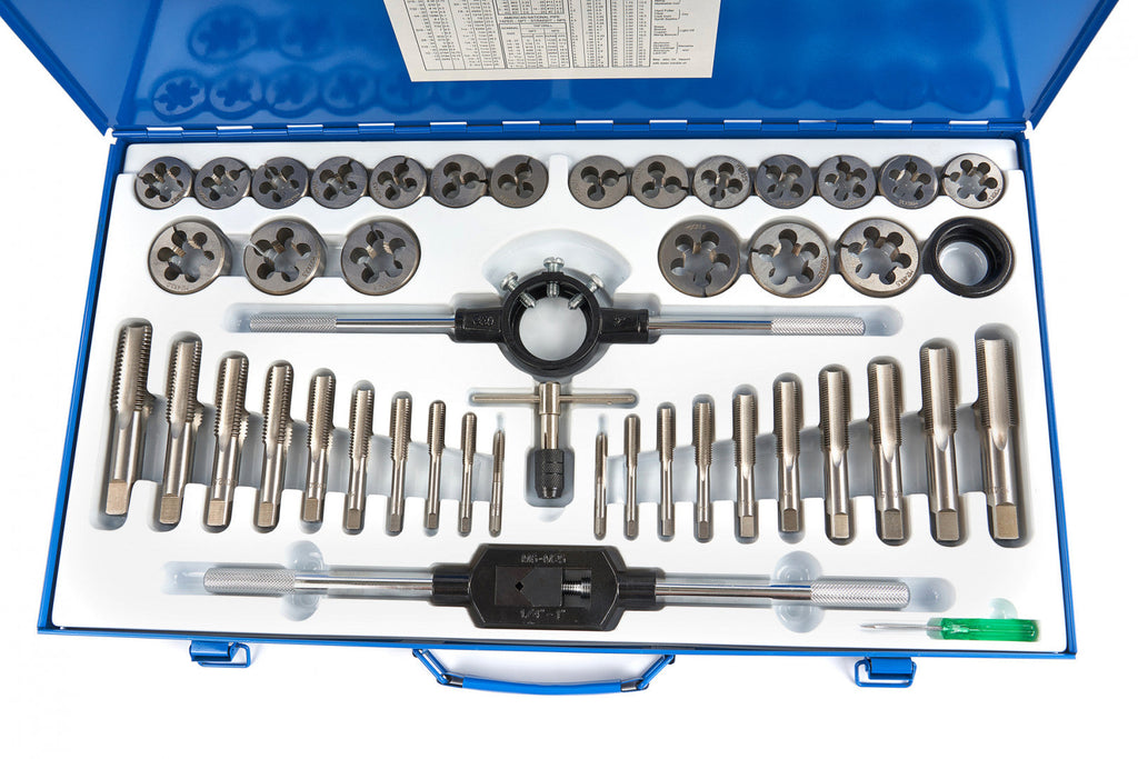 SÚPRAVA ZÁVITNÍKOV A ZÁVITOVNÍC 46 KUSOV M6-M24 HBM umožňuje výrobu presných závitových spojov, v súlade so štandardom, potrebných pri renováciách, stavebných prácach a inštalatérskych prácach.