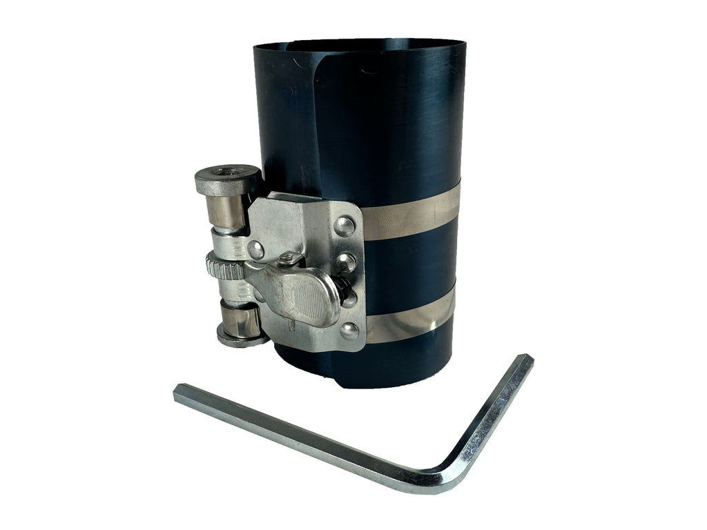 PRÍPRAVOK NA MONTÁŽ PIETNYCH KRÚŽKOV 53-175 MM GEBO TOOLS uľahčuje zasunutie piestu do valca a zaisťuje rovnomerné stlačenie krúžkov. Má výšku 10 cm a rozsah otvorenia od 53 do 175 mm.