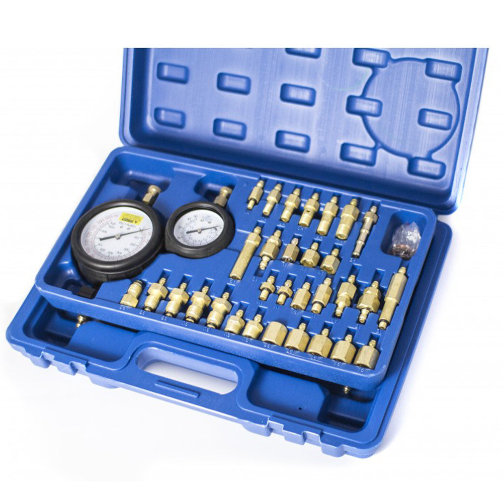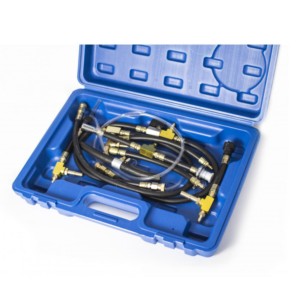 TAKÝTO TESTER TLAKU PALIVA PRE BENZÍN A DIESEL je vhodný na meranie tlaku paliva v systémoch s vysokým aj nízkym tlakom. Súprava obsahuje dva snímače pre aplikácie s nízkym a vysokým tlakom: 0–145 psi a 0–1000 kPa.