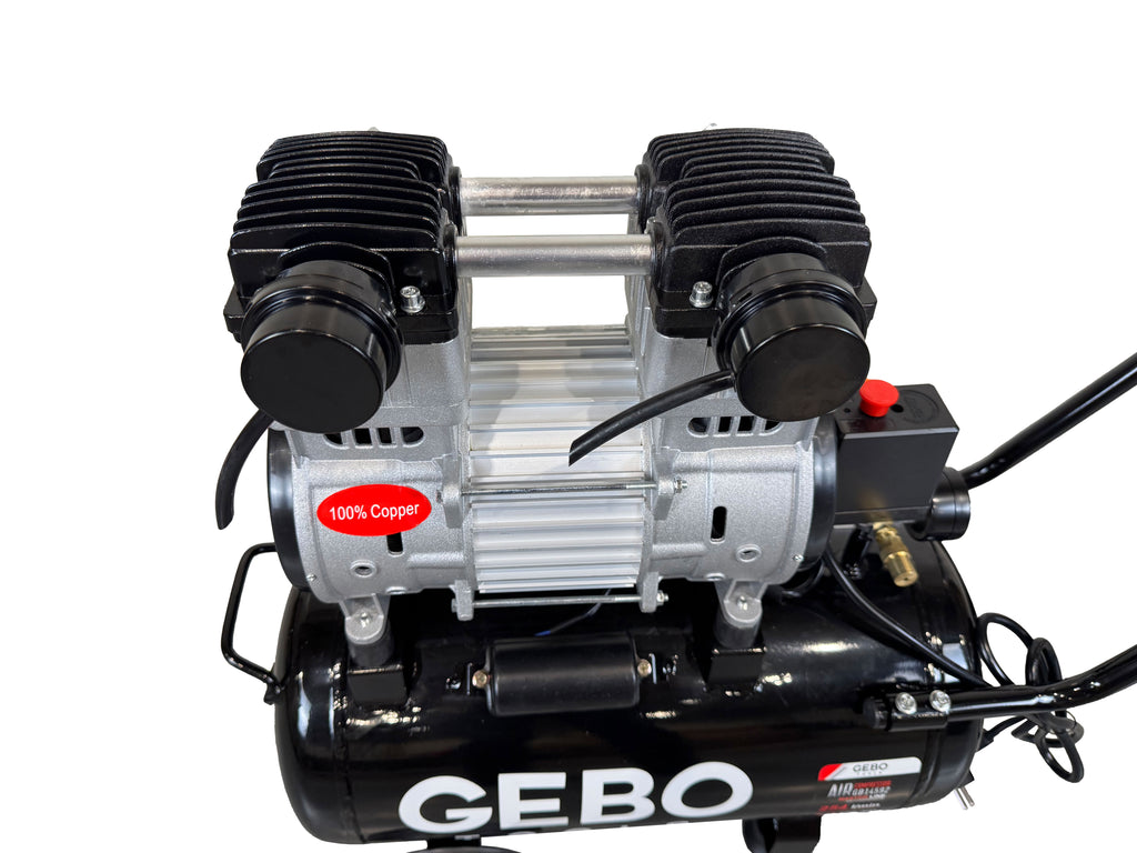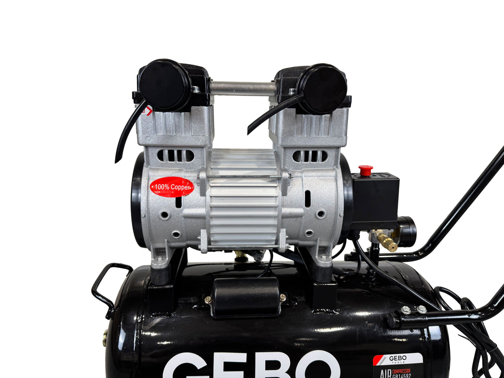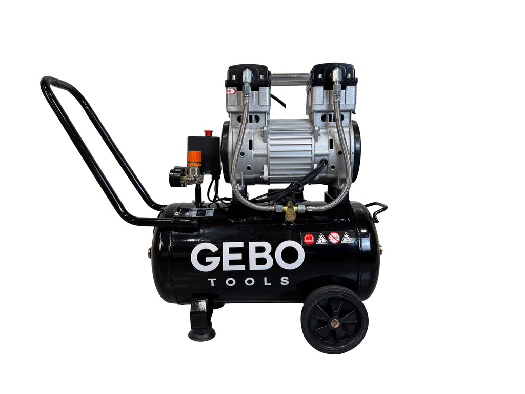 TICHÝ BEZOLEJOVÝ KOMPRESOR 30L GEBO TOOLS má objem nádrže 30 litrov a pracuje s maximálnym prevádzkovým tlakom 8 barov. Je vybavený motorom s výkonom 2 hp a dvoma valcami. Napájacie napätie je 220 V s frekvenciou 50 Hz. Rýchlosť otáčania motora je 1400 ot./min.