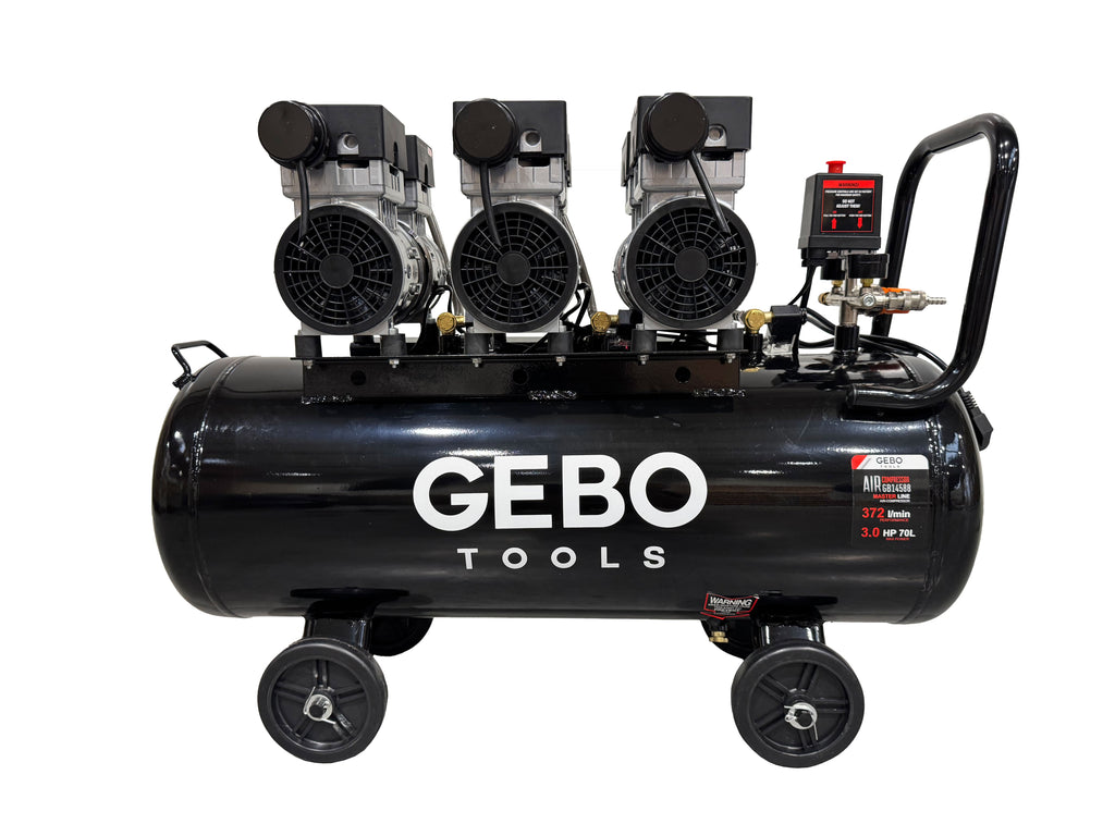 TICHÝ KOMPRESOR 70L M2 GEBO TOOLS má objem nádrže 70 litrov a pracuje s maximálnym prevádzkovým tlakom 8 barov. Je vybavený motorom s výkonom 3 hp a šiestimi valcami. Napájanie je 220 V / 50 Hz. Rýchlosť otáčok motora je 1400 ot./min.