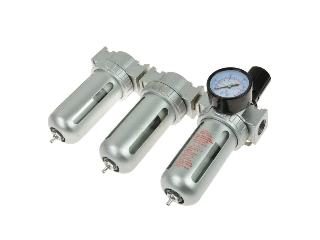 TENTO TROJITÝ VZDUCHOVÝ FILTER S REGULÁTOROM TLAKU GEKO je určený na čistenie prívodného vzduchu od kvapalných alebo pevných častíc. Je vybavený filtrom na zníženie vlhkosti.