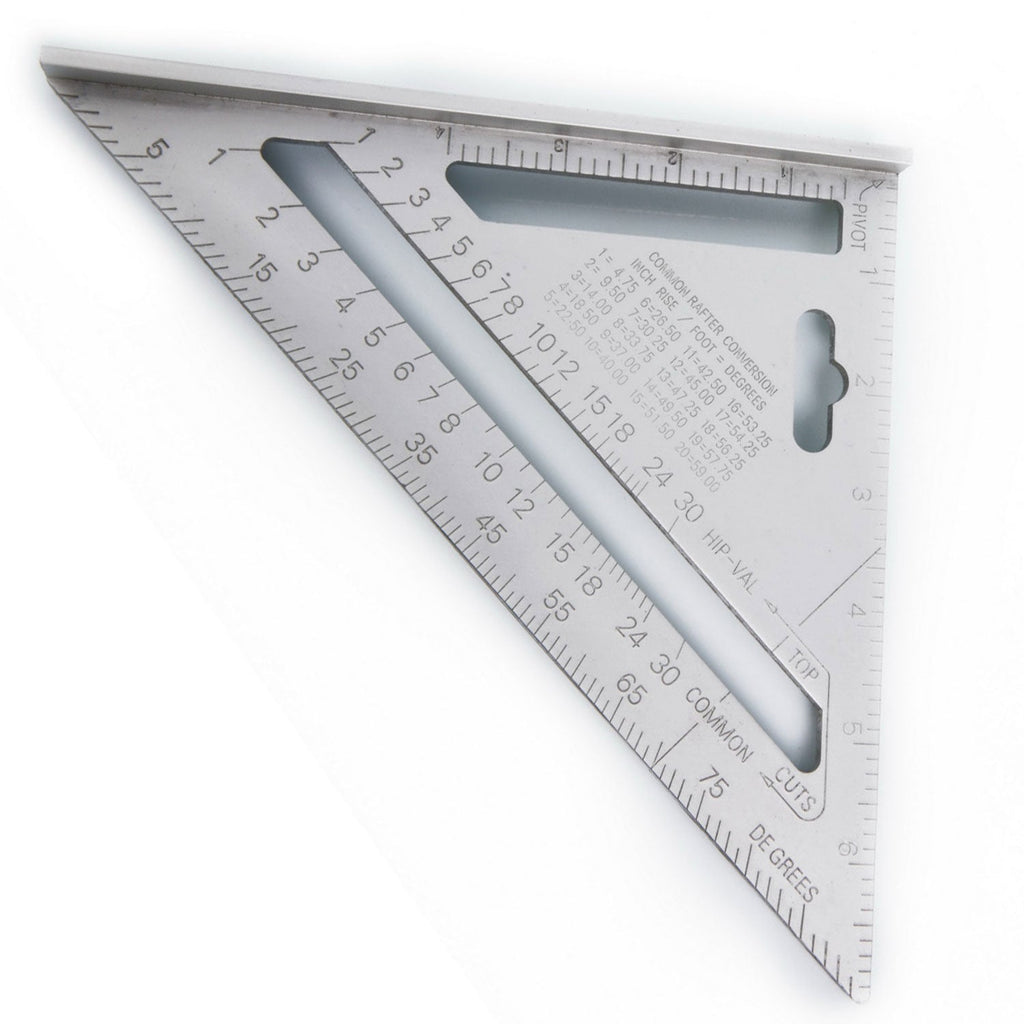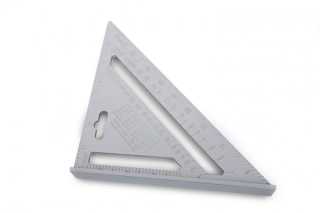 HLINÍKOVÉ TROJUHOLNÍKOVÉ MERACIE PRAVÍTKO HBM je pevný hliníkový rám s jasnou imperiálnou stupnicou a prehľadnou konverznou tabuľkou. Hrana v tvare T pre optimálne umiestnenie. Uhlomer až do 90°. Používa sa na meranie uhlov a ako vodiaca lišta pre pílu.