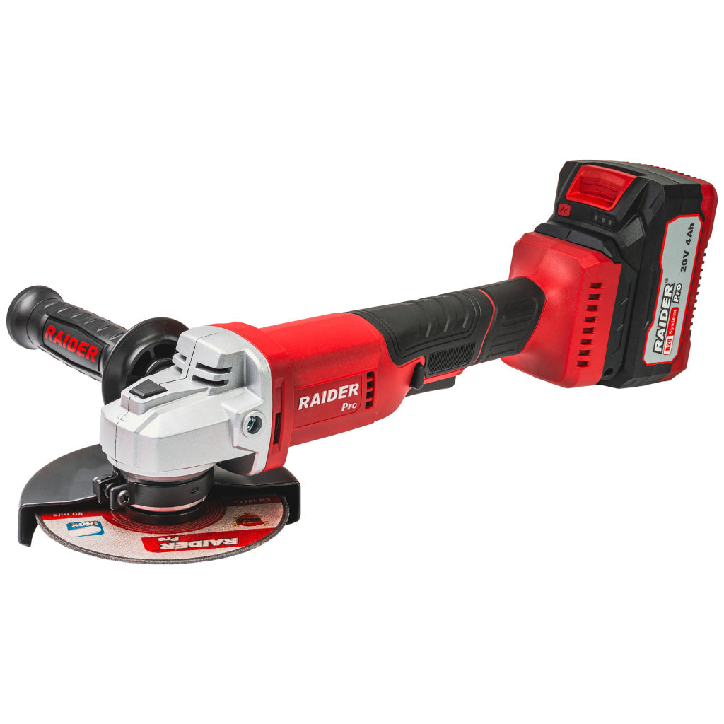 Uhlová brúska 125 mm s akumulátorom r20 4 ah, 2 rezné kotúče a plastový kufor raider pro