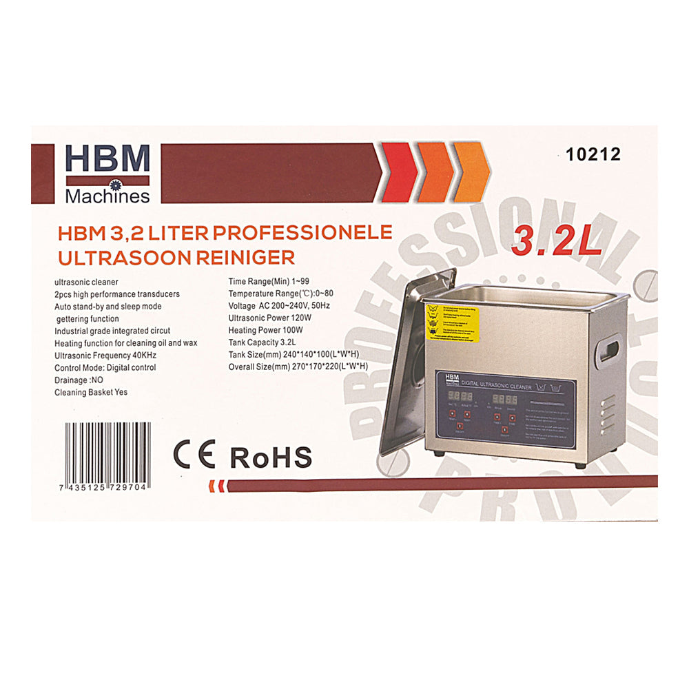 Ultrazvuková čistička 3l, nehrdzavejúca oceľ, digitálny časovač, HBM Machines Holandsko