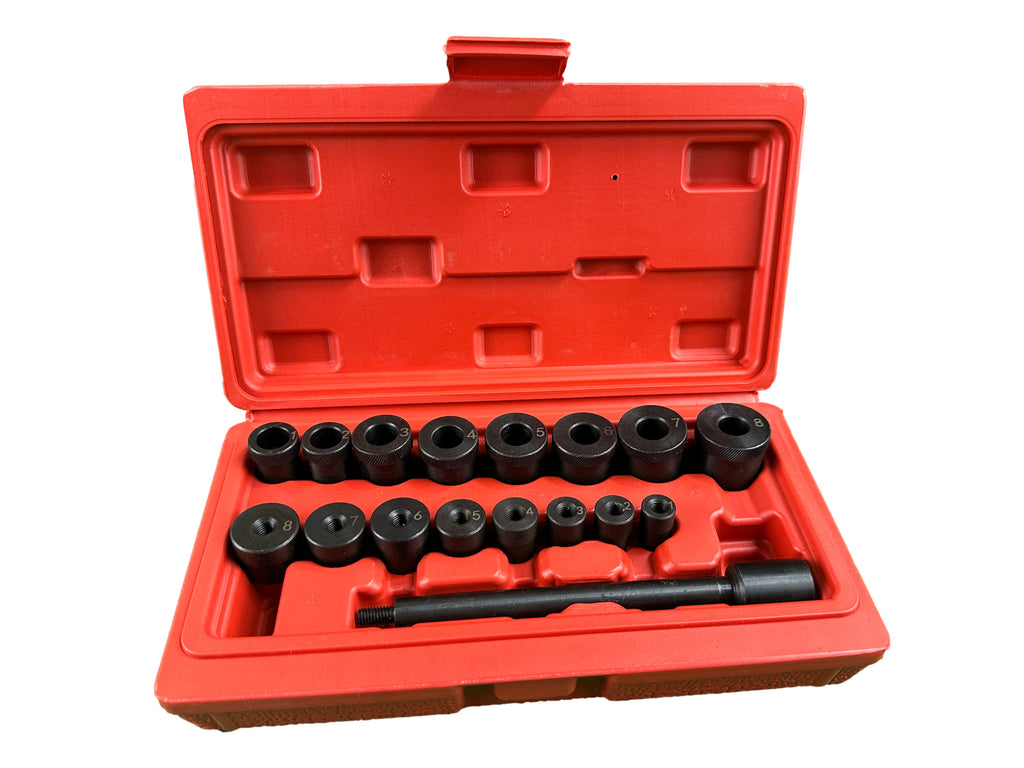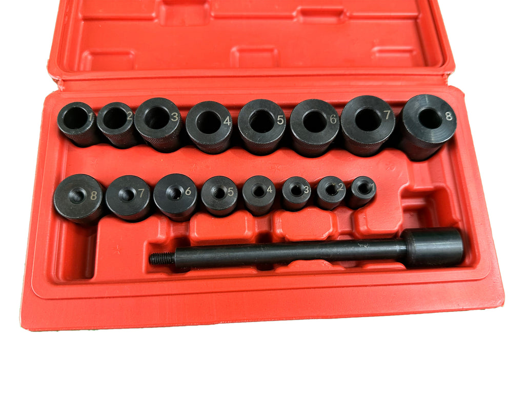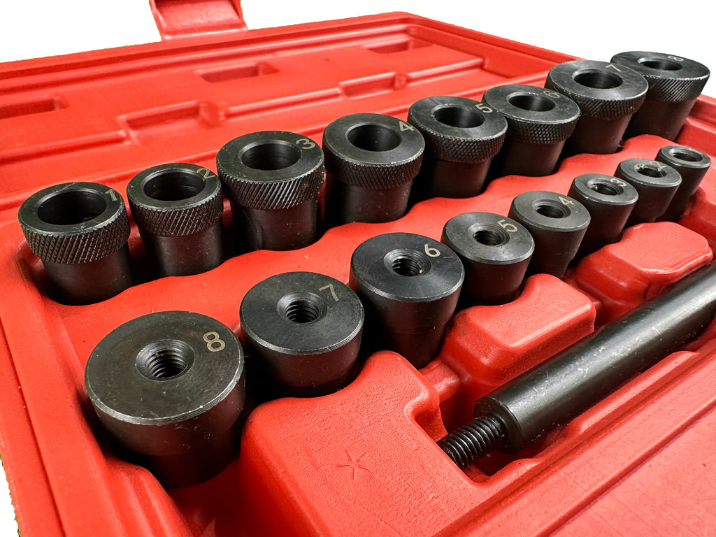 UNIVERZÁLNA SADA NA CENTROVANIE SPOJKY GEBO TOOLS obsahuje adaptéry rôznych rozmerov a centrálny hriadeľ na centrovanie spojkového kotúča. Tie sú kompatibilné so všetkými typmi áut.