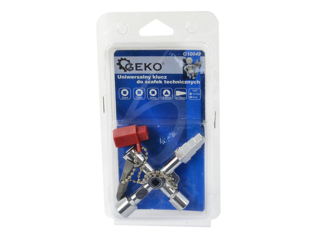 Tento UNIVERZÁLNY KĽÚČ PRE TECHNICKÉ SKRINE GEKO je určený na ovládanie uzatváracích a regulačných prvkov v technických inštaláciách, ako sú skrinky na plynomery, vodomery a elektromery, klimatizačné jednotky, uzatváracie ventily, napájacie konzoly, kohútiky pre čerpadlá ústredného kúrenia, ventily radiátorov a vypúšťacie ventily.