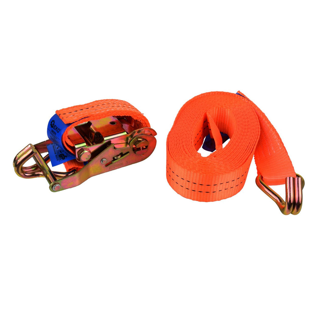 UPÍNACÍ POPRUH S RÁČNOU 6M 2T 35MM je vyrobený z vysoko kvalitného polyesteru. Jeden koniec je vybavený slučkou a druhý koniec má upevňovací systém typu J-hák. Upevnenie sa vykonáva pomocou ráčnového mechanizmu. Pracovná nosnosť dosahuje až 2000 kg. Popruh je vyrobený v súlade s normou EN12195-2. Celková dĺžka popruhu je 6 m a šírka 35 mm.