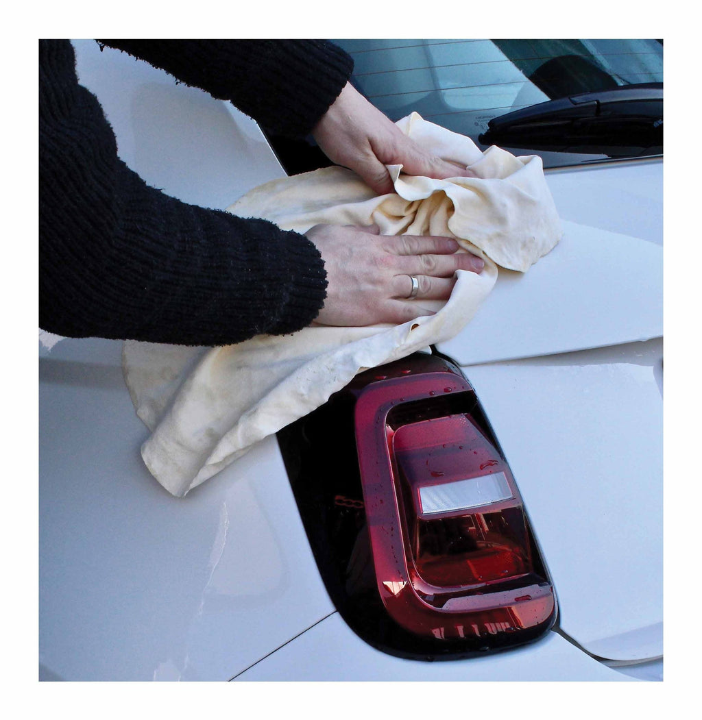 Prírodná kozacia koža je najlepším spôsobom, ako odstrániť vodu a zabrániť vzniku škvŕn na karosérii auta. Je viac savá ako mikrovláknové handričky, vďaka čomu dokáže v priebehu niekoľkých okamihov odstrániť vodu z okien a kapoty.