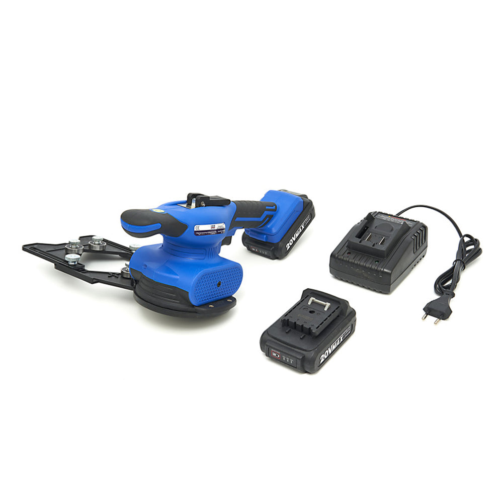 VIBRÁTOR S PRÍSAVKOU NA KERAMICKÉ DLAŽDICE S AKUMULÁTOROM 20V je dodávaný s 2 Li-Ion batériami s napätím 20 V a kapacitou 2.0 Ah plus nabíjačkou. Maximálna nosnosť je 50 kg a frekvencia vibrácií je od 0 do 10000 otáčok.