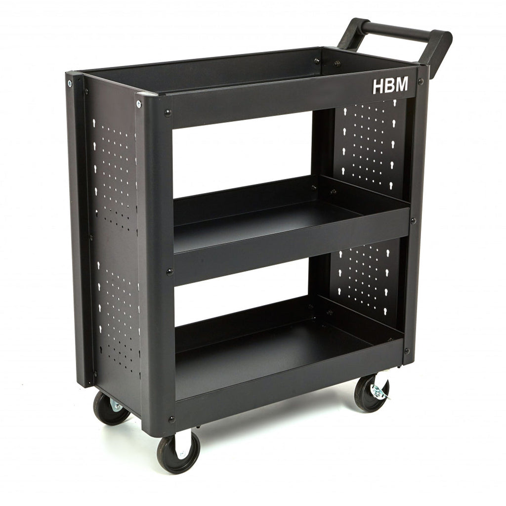 Dielenský vozík, 3 police, zásuvka, čierny HBM
