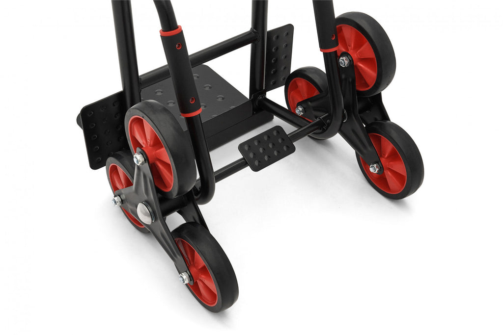 TENTO VOZÍK NA PREPRAVU TOVARU PO SCHODOCH 300KG MODEL 2 HBM je ideálny na presuny aj po schodoch a obrubníkoch vďaka 6 kolesám s ložiskami. Rukoväte sú pogumované pre vyšší komfort. Počas prepravy je náklad zabezpečený aj v prípade naklonenia.