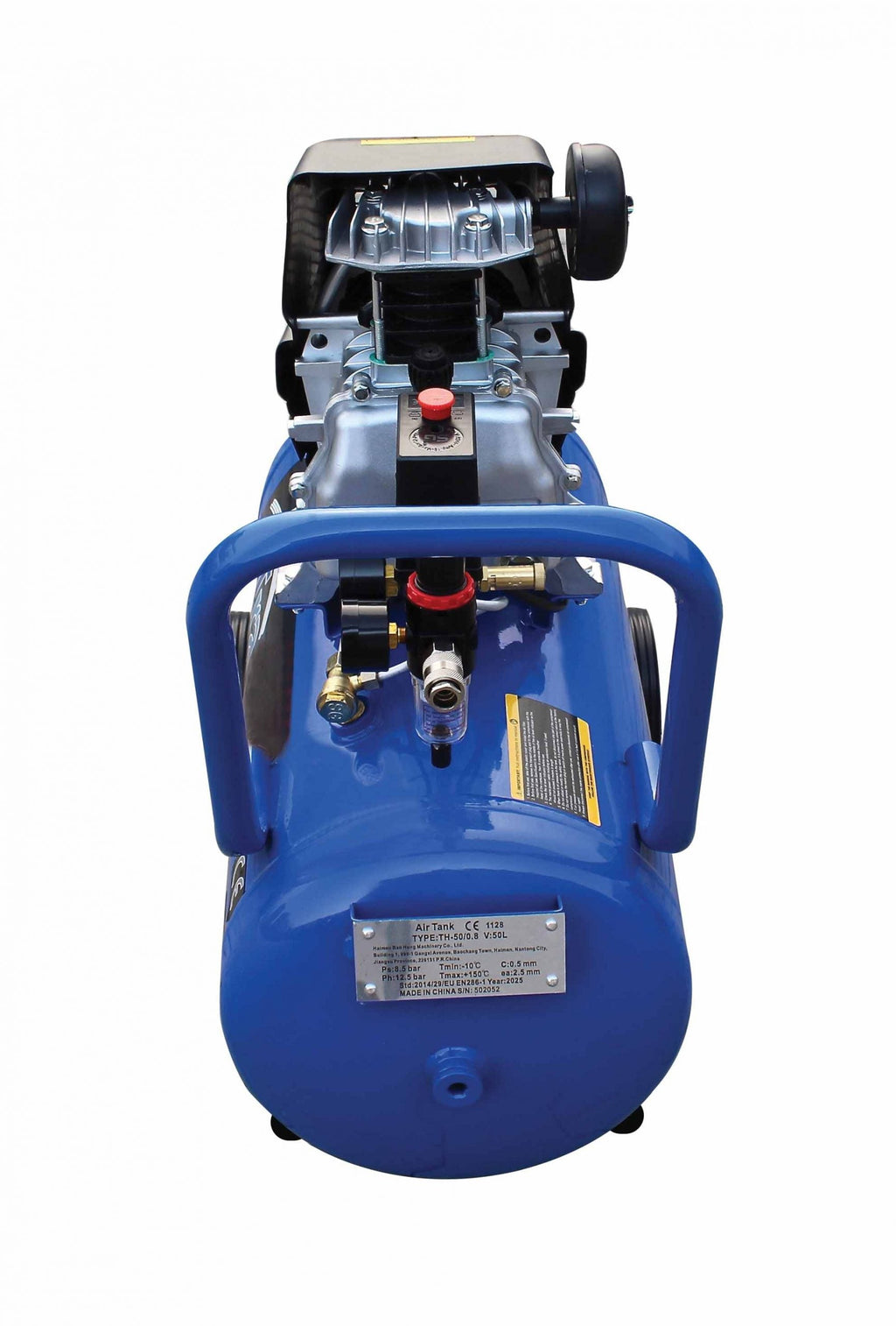KOMPRESOR VZDUCHU S PRIAMYM POHONOM 50L SATRA je vybavený výkonným motorom s výkonom 1 kW (1,5 HP), pracuje pri štandardnom napätí 220 V a frekvencii 50 Hz, pričom dosahuje rýchlosť 2850 ot./min.