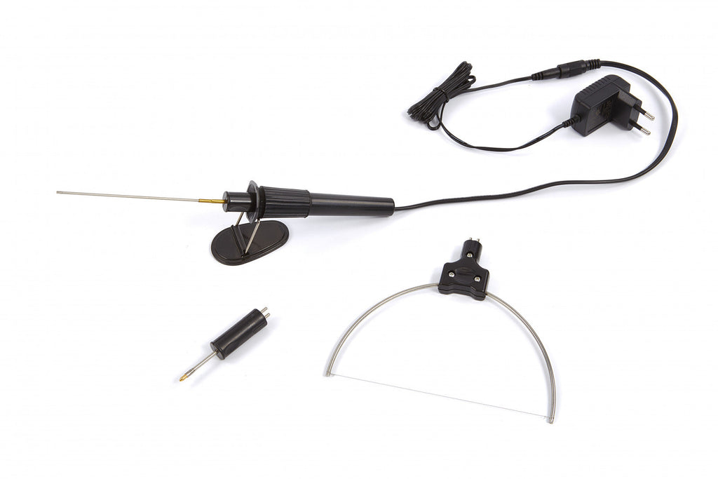 - Rozmery Ø 0.23 mm x 180 mm (rezací drôt), Ø 1.5 mm x 170 mm (čepeľ), Ø 3 mm x 83 mm (gravírovacie zariadenie)