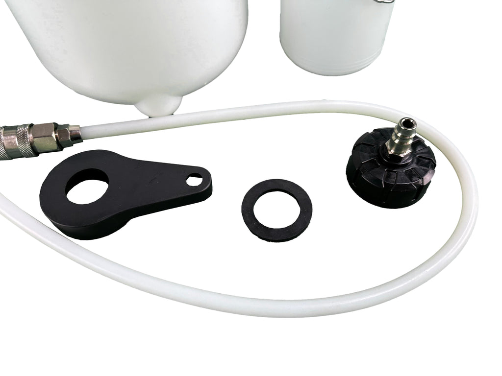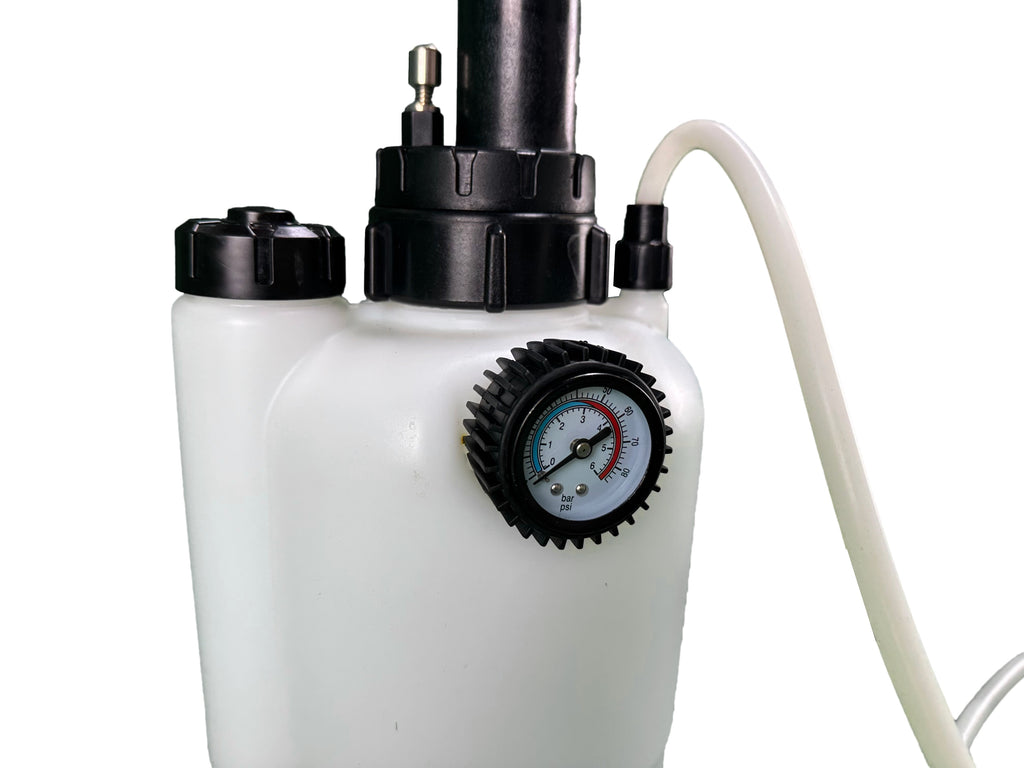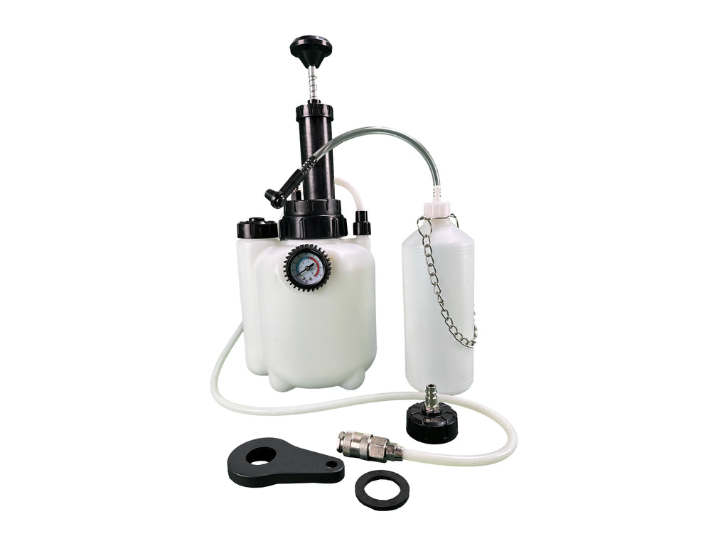 TENTO PRÍSTROJ NA VÝMENU A ODVZDUŠNENIE BRZDOVEJ KVAPALINY 3L GEBO TOOLS je zariadenie navrhnuté na výmenu a odvzdušnenie brzdovej kvapaliny v brzdovom systéme vozidla. Prevádzkový tlak je 2 bary, hoci maximálny tlak môže dosiahnuť až 5 barov. Tlakový rozsah robí jednotku vhodnou na použitie so systémami ABS