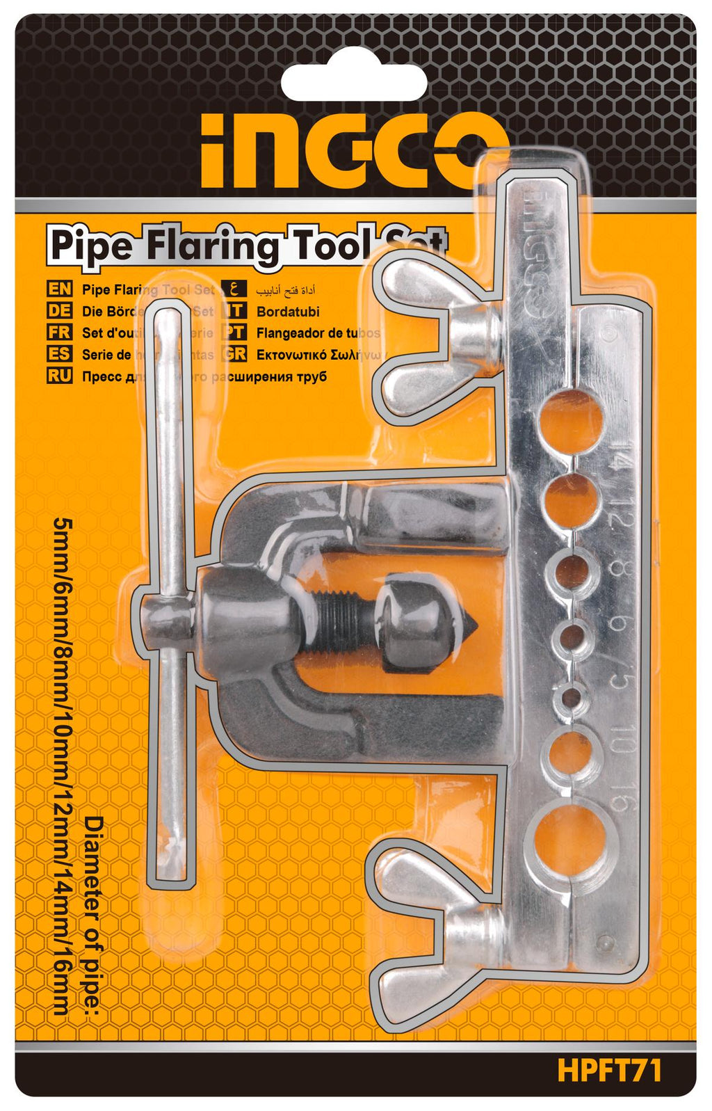 TOTO ZARIADENIE NA ROZŠIROVANIE TRUBIEK 5-16MM INGCO je zariadenie, pomocou ktorého môžete rozširovať, rozširovať alebo závitovať medené alebo hliníkové rúrky. Môže sa používať na opravy brzdových systémov, hydraulických systémov alebo palivových potrubí automobilov.