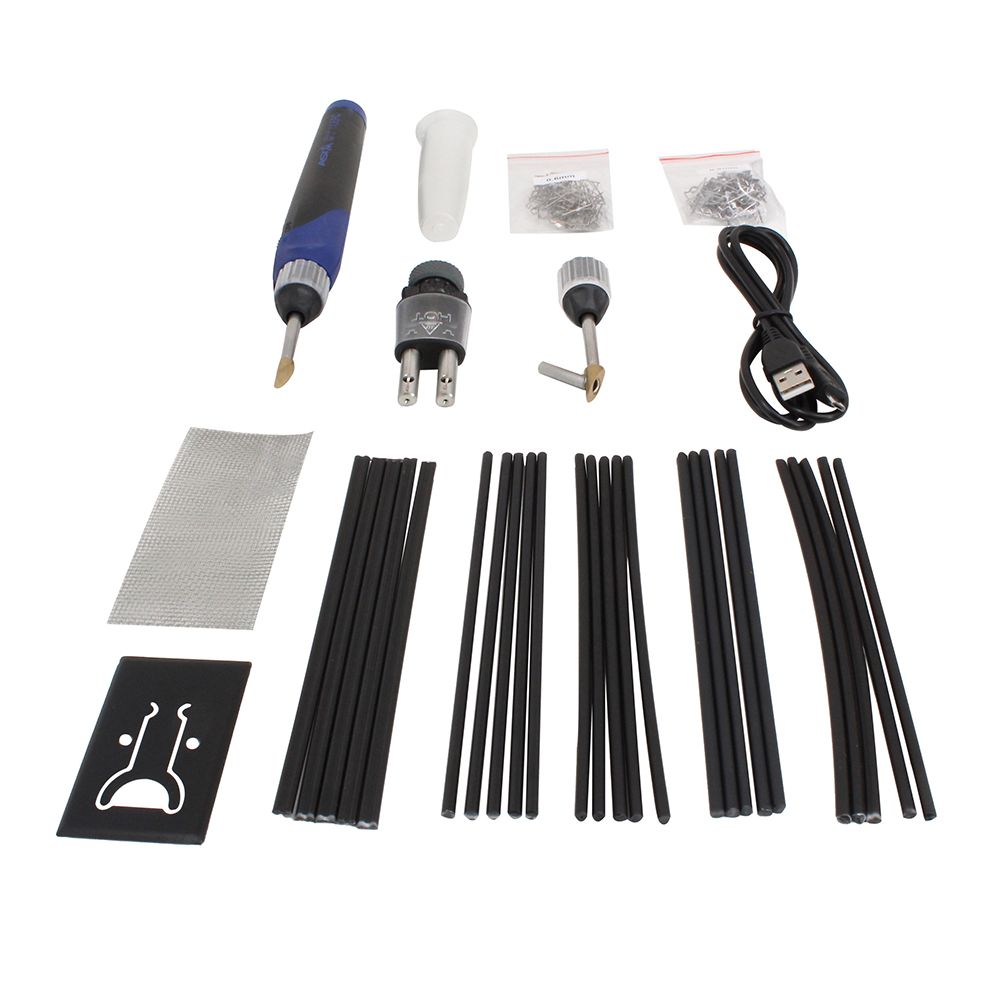 TENTO SPÁJKOVACÍ PRÍSTROJ S CÍNOM - ZVÁRANIE PLASTOVÝCH PRVKOV S NABÍJATEĽNÝM LI-ION AKUMULÁTOROM 2500mAh 500°C je prispôsobený na mimoriadne presné práce, ako sú integrované obvody, drôtové spoje a ťažké spájkovanie, ako aj na rezanie plastových materiálov, syntetických lán, rezanie, vyrezávanie, opracovanie dreva, tepelné zmršťovanie a ľahšie aplikácie. Možno ho použiť aj na opravu plastových nárazníkov, mriežok, krytov, zlomených montážnych sponiek a všetkých ostatných typov plastových dielov. Zváraním prvkov pomocou sponiek rôznych tvarov je možné spájať plastové časti. Dlhé elektródy uľahčujú prístup do ťažko dostupných miest.