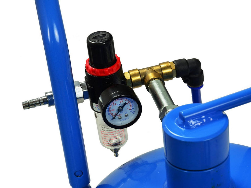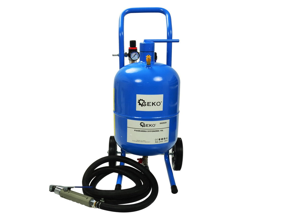 TOTO ZARIADENIE NA VONKAJŠIE PIESKOVANIE 19L GEKO je ideálne na údržbu karosérie. Pracuje s tlakom 4.1-8.6 bar (60-125 psi), prietok vzduchu je medzi 170 a 700 L/min.