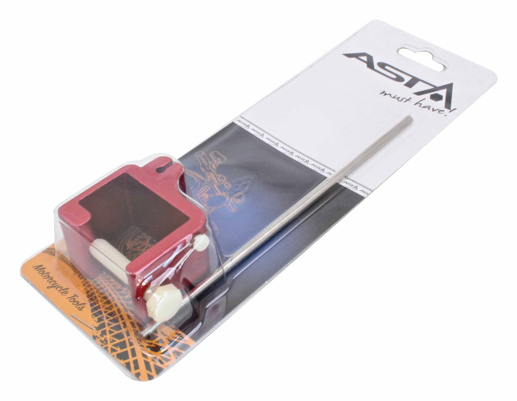 TOTO ZARIADENIE NA ZAROVNANIE RETAZE MOTOCYKLA je špecializované na upevnenie reťaze kolmo na zadné koleso počas kontrol.