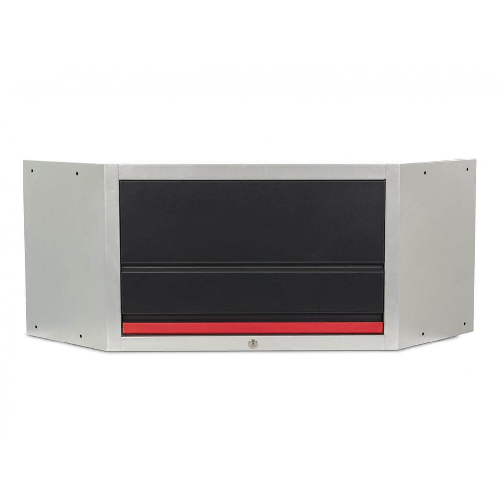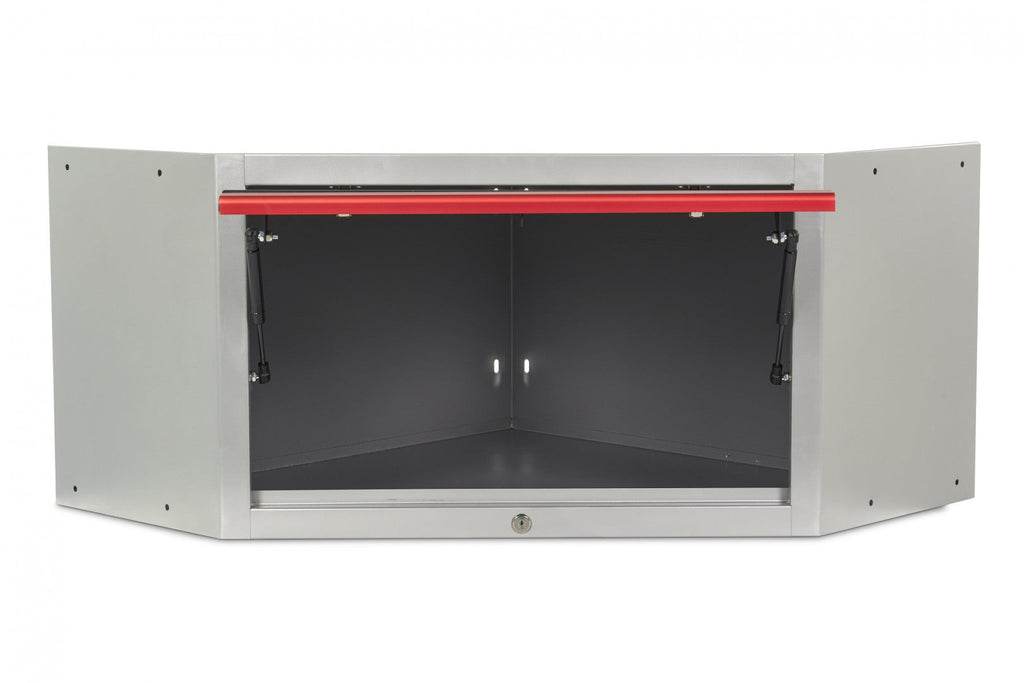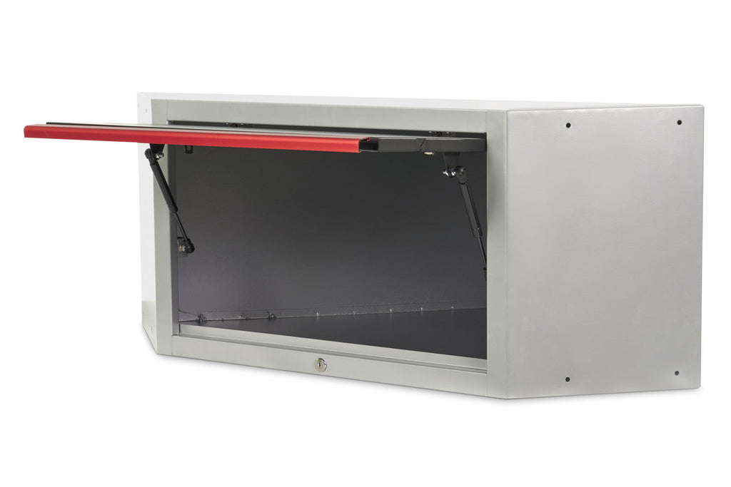 TÁTO ZÁVESNÁ ROHOVÁ SKRIŇA NA STENU PRE SERVISNÚ DIELŇU je pevná zváraná konštrukcia, ktorá nevyžaduje montáž. Pomocou našich výrobkov si môžete zostaviť skriňu tak veľkú, ako potrebujete. Čo je presne vhodné pre vašu dielňu a pretože je veľmi pekná, dodáva dielni oveľa profesionálnejší vzhľad. Steny systému sú v metalickej sivej (striebornej) farbe. Zásuvky a dvere sú v matnej čiernej farbe a úchyty a horné dvierka zásuviek sú vždy vyrobené z krásneho profilu z červeného eloxovaného hliníka, ktorý tomuto systému skríň dodáva veľmi sofistikovaný a elegantný vzhľad.