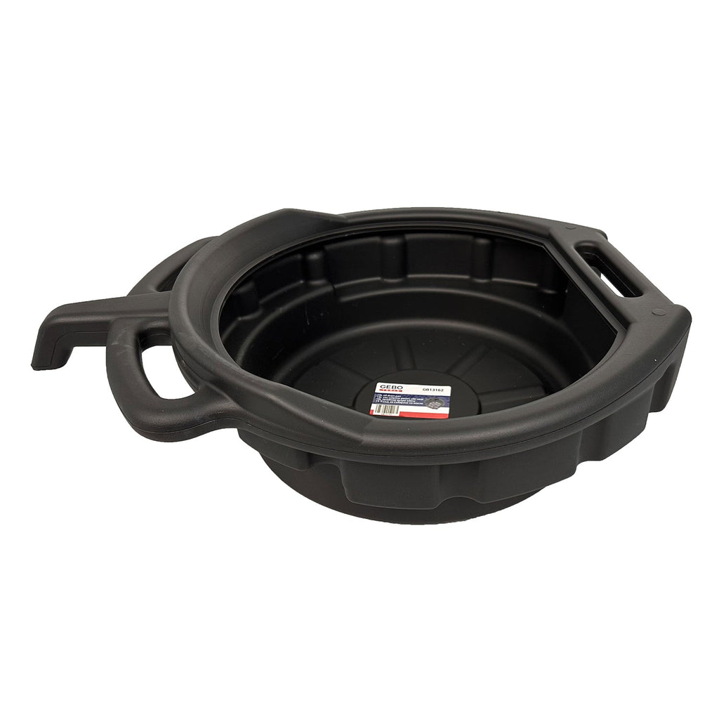 TÁTO NÁDOBA – ZBERNÁ MISKA NA POUŽITÝ OLEJ 15L GEBO TOOLS je vyrobená z odolného plastu, vhodná na rôzne kvapaliny, ako sú oleje, chemikálie, chladiaca kvapalina, nemrznúca zmes, alkohol alebo benzín. S výškou 14,5 cm a priemerom 41 cm je ideálna na použitie v stiesnených priestoroch. Nádoba odoláva teplotám až do 60 °C a váži 1,2 kg. Maximálna skutočná kapacita je 14,8 litra.