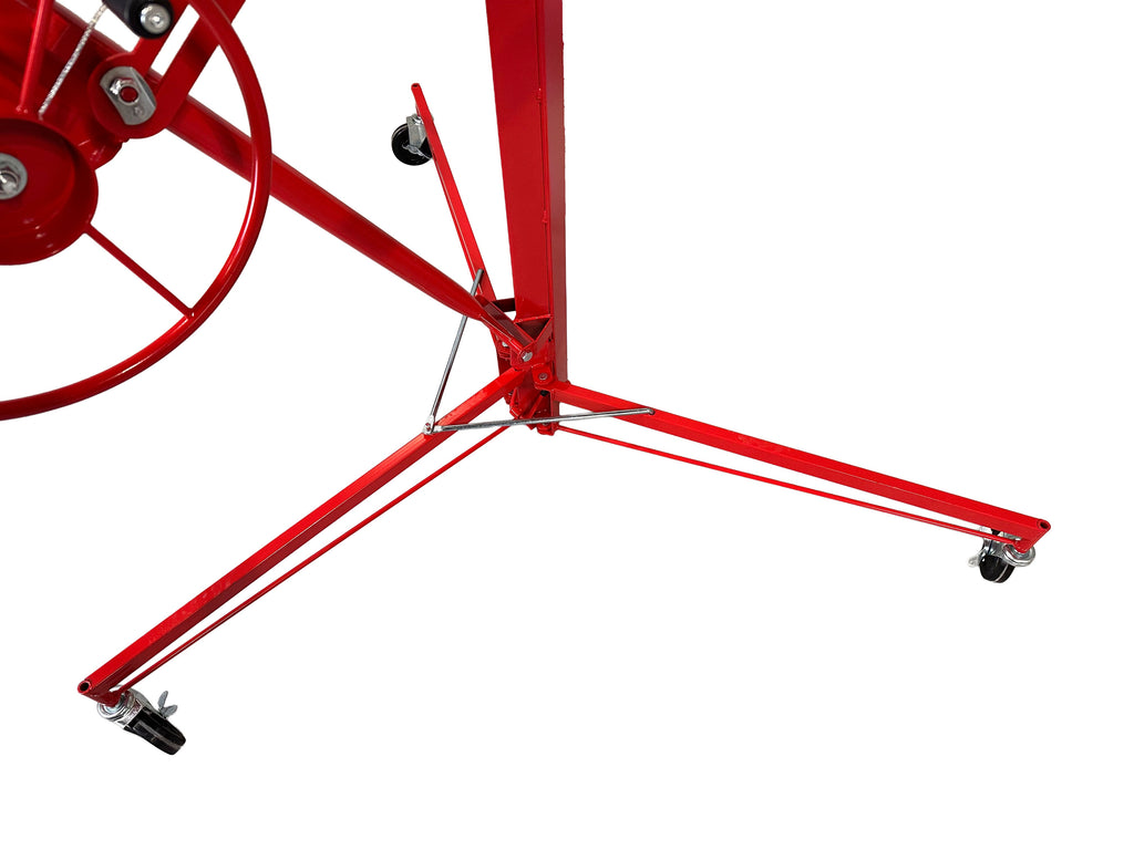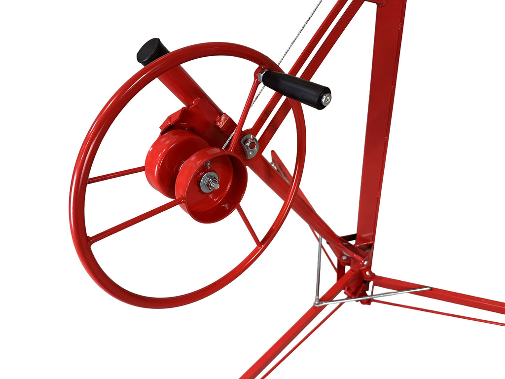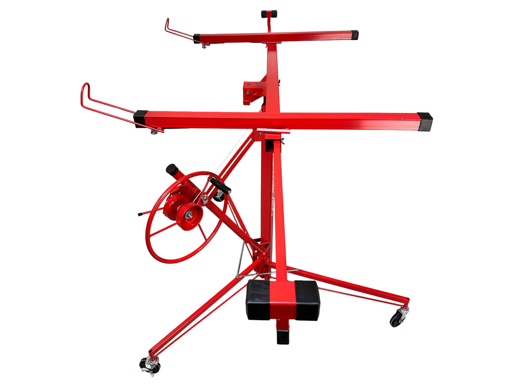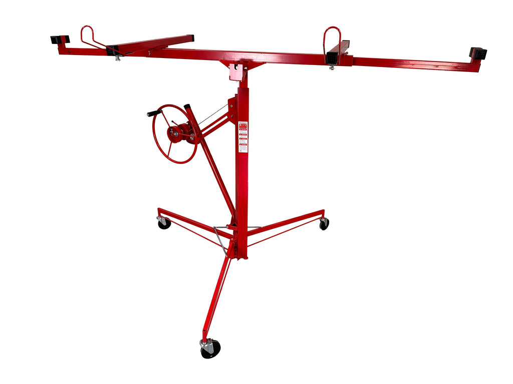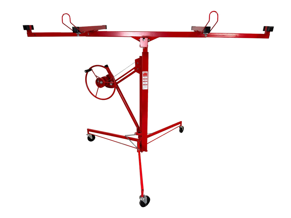 ZARIADENIE NA ZDVIHANIE SADROKARTÓNOVÝCH ALEBO OSB DOSIEK je určené na manipuláciu a montáž sadrokartónových alebo OSB dosiek, pričom uľahčuje ich zdvíhanie až do maximálnej výšky 335 cm. Minimálna pracovná výška je 122 cm a maximálny rozmer kompatibilnej dosky je 128 × 488 cm. Maximálna nosnosť je 68 kg. Zariadenie je vybavené otočným držiakom na panely, automatickou brzdou pre bezpečnosť počas používania a PVC kolieskami s priemerom 125 mm pre jednoduchý pohyb.