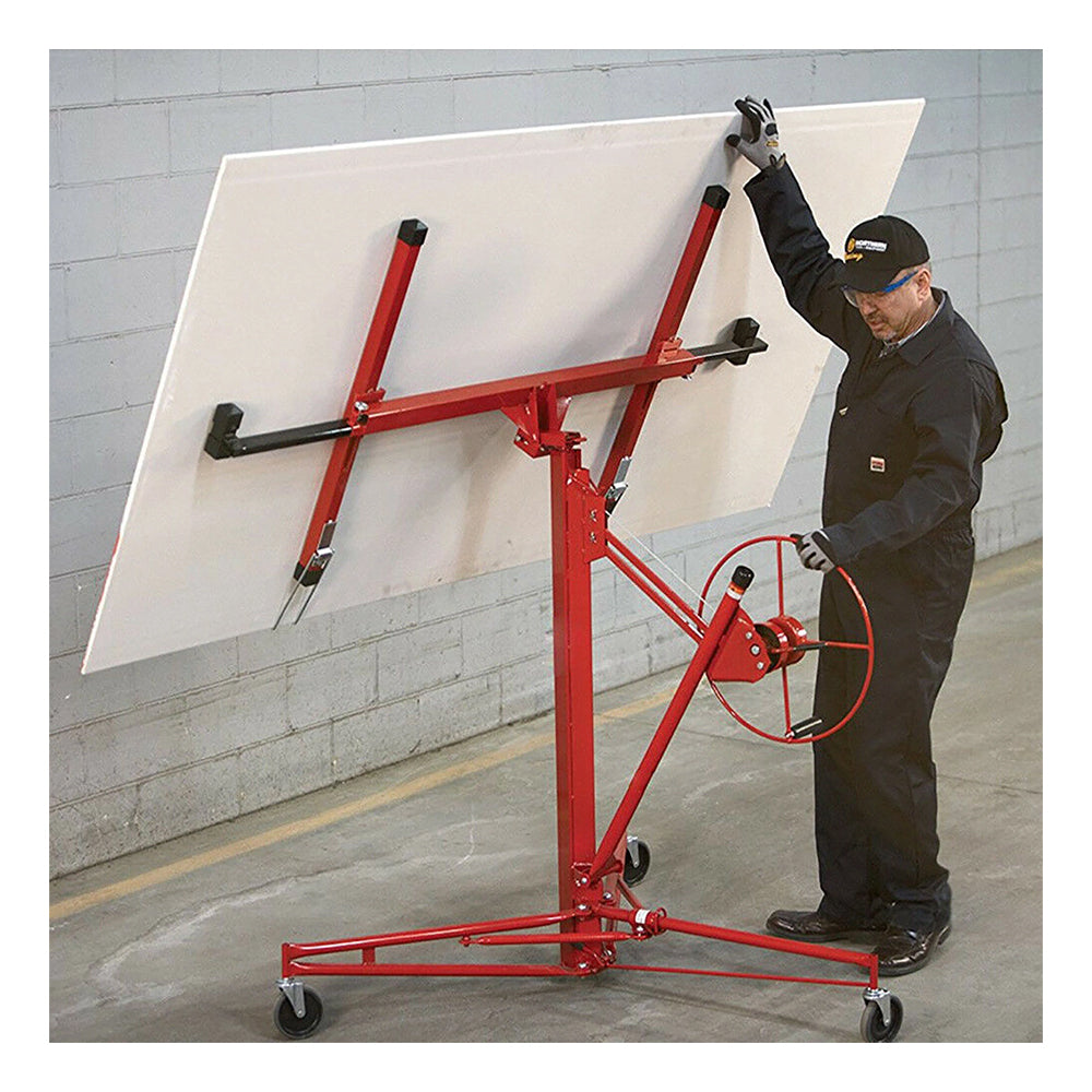 TOTO ZARIADENIE NA ZDVIHANIE SADROKARTÓNOVÝCH ALEBO OSB DOSIEK VÝŠKA ZDVIHU 3,35M umožňuje montáž sadrokartónových a OSB dosiek jednou osobou.