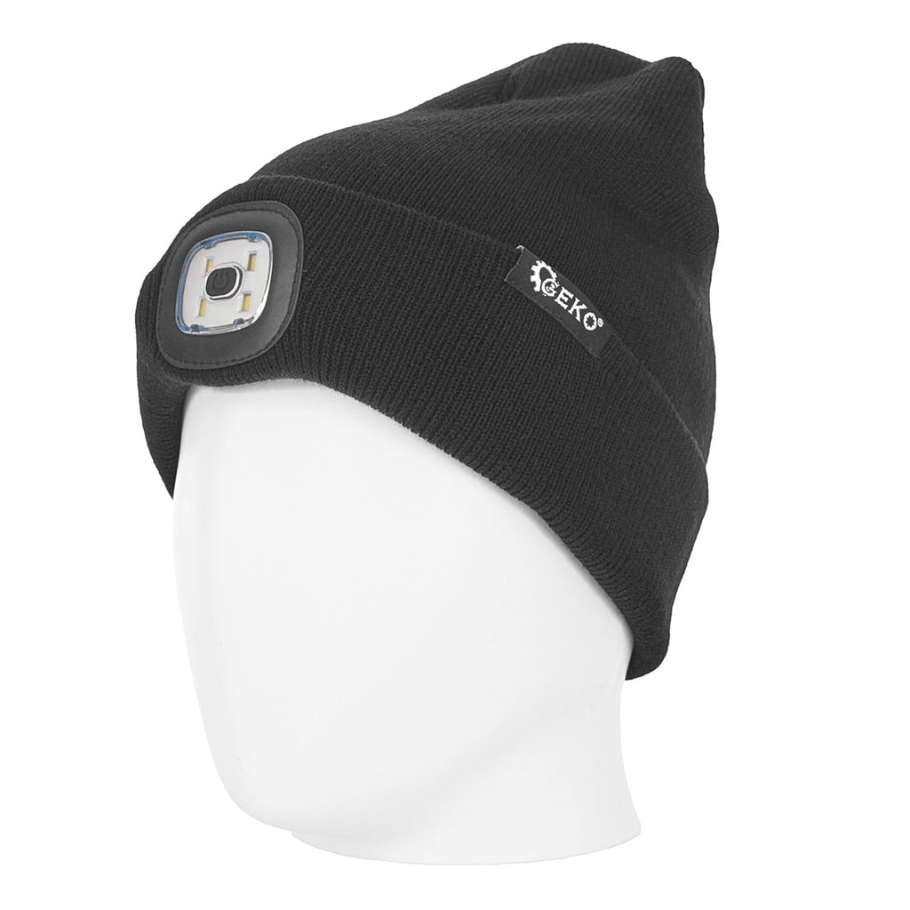 Zimná čiapka s nabíjateľnou LED lampou, čierna