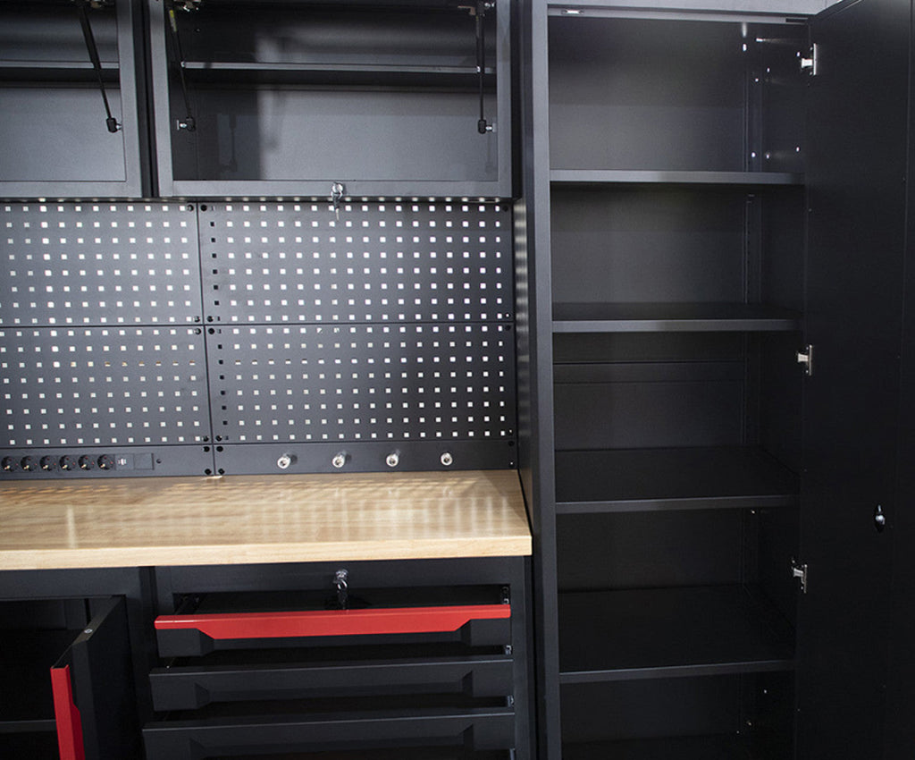 Farebná kombinácia čiernej a červenej ponúka moderný a atraktívny vzhľad, pridáva nádych štýlu a osobitosti do pracovného priestoru. S týmto modulárnym nábytkom môžu používatelia efektívne organizovať a usporiadať pracovný priestor, čím uľahčia prístup k potrebným nástrojom a materiálom počas práce.