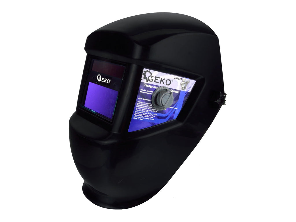 SVAŘOVACÍ MASKA S AUTOMATICKÝM ZTMAVOVÁNÍM GEKO je navržena tak, aby chránila oči a obličej před jiskrami během svařování a také před UV a IR zářením. Je vhodná pro svařování obloukem (MMA s obalenou elektrodou, MIG-MAG a TIG s ochranným plynem - poloautomat), stejně jako pro TIG svařování (-) - nízký proud (20A).