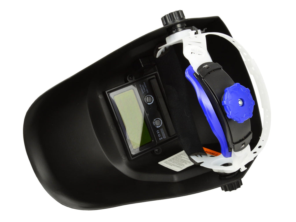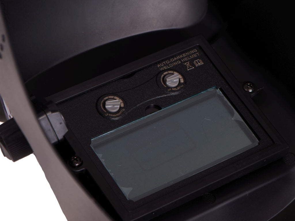 Štít je vyroben z odolného polymerového materiálu a poskytuje široké zorné pole 92,5 x 42,5 mm. Dále má automatický spínač on/off a umožňuje nastavení stupně ztmavení a citlivosti fotosenzorů. Navíc umožňuje automatické přizpůsobení režimu svařování.