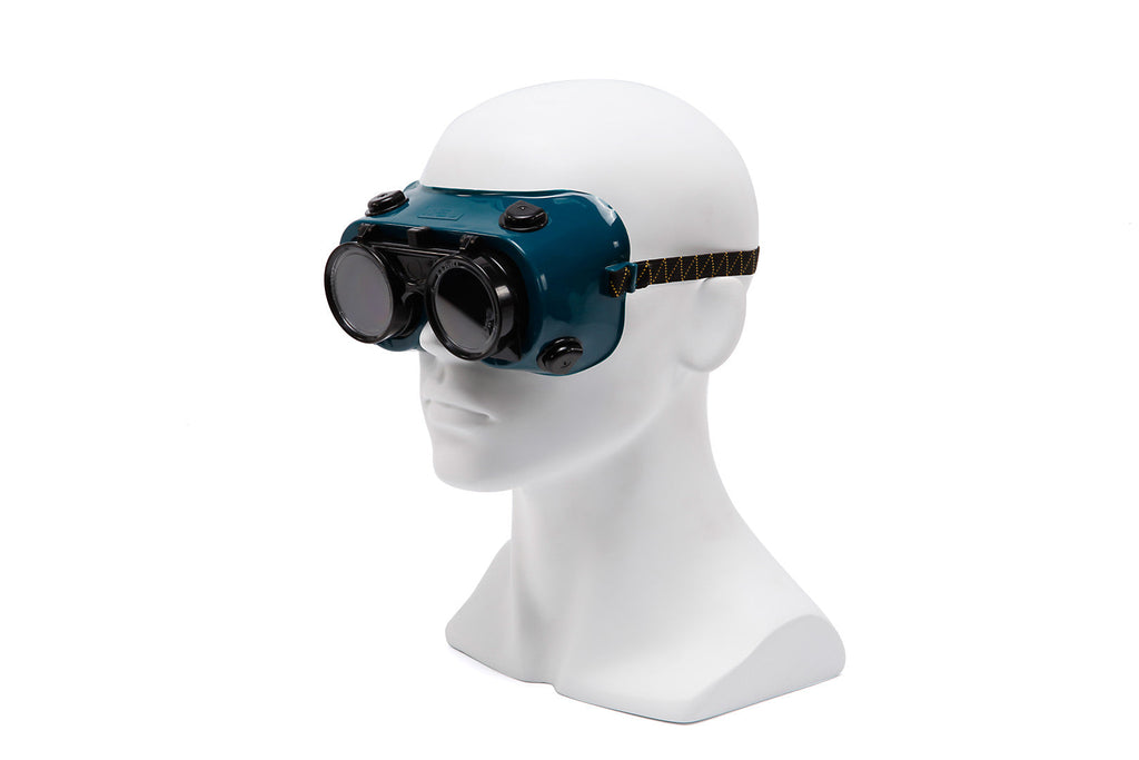 - S transparentními čočkami z polykarbonátu a barevnými svářecími brýlemi s průměrem Ø 50 mm.